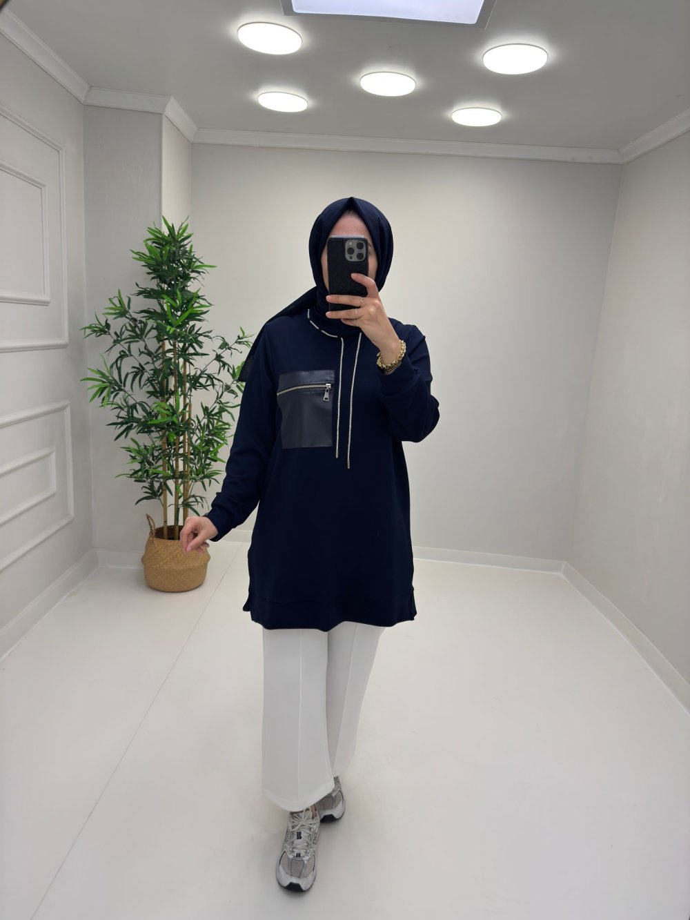 Deri Cep Detay Tunik Lacivert