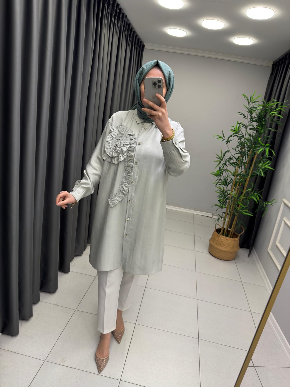 Gül Detay Tensel Gömlek Su Yeşili