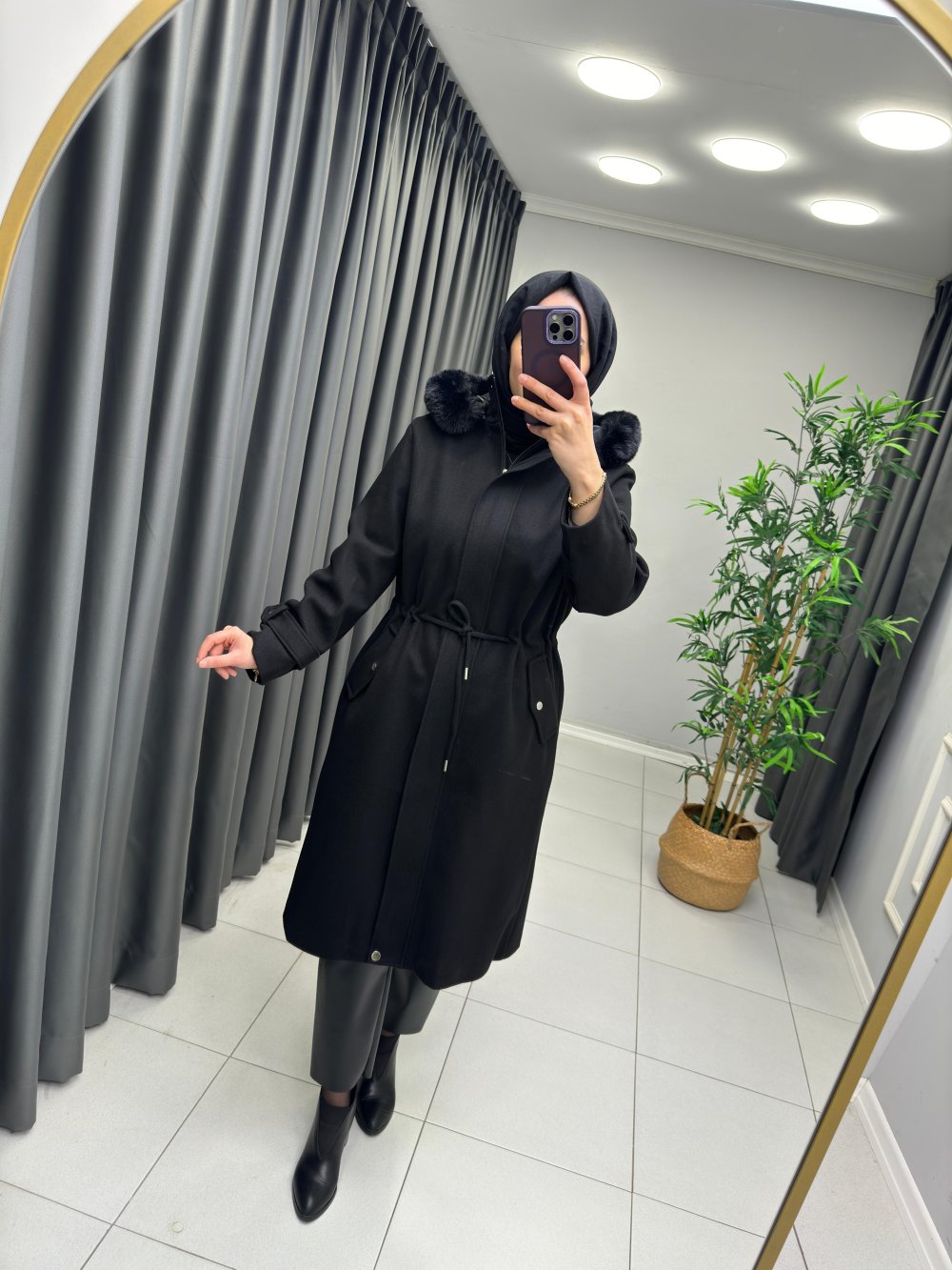 Levidor Peluş Detaylı Kaban Siyah