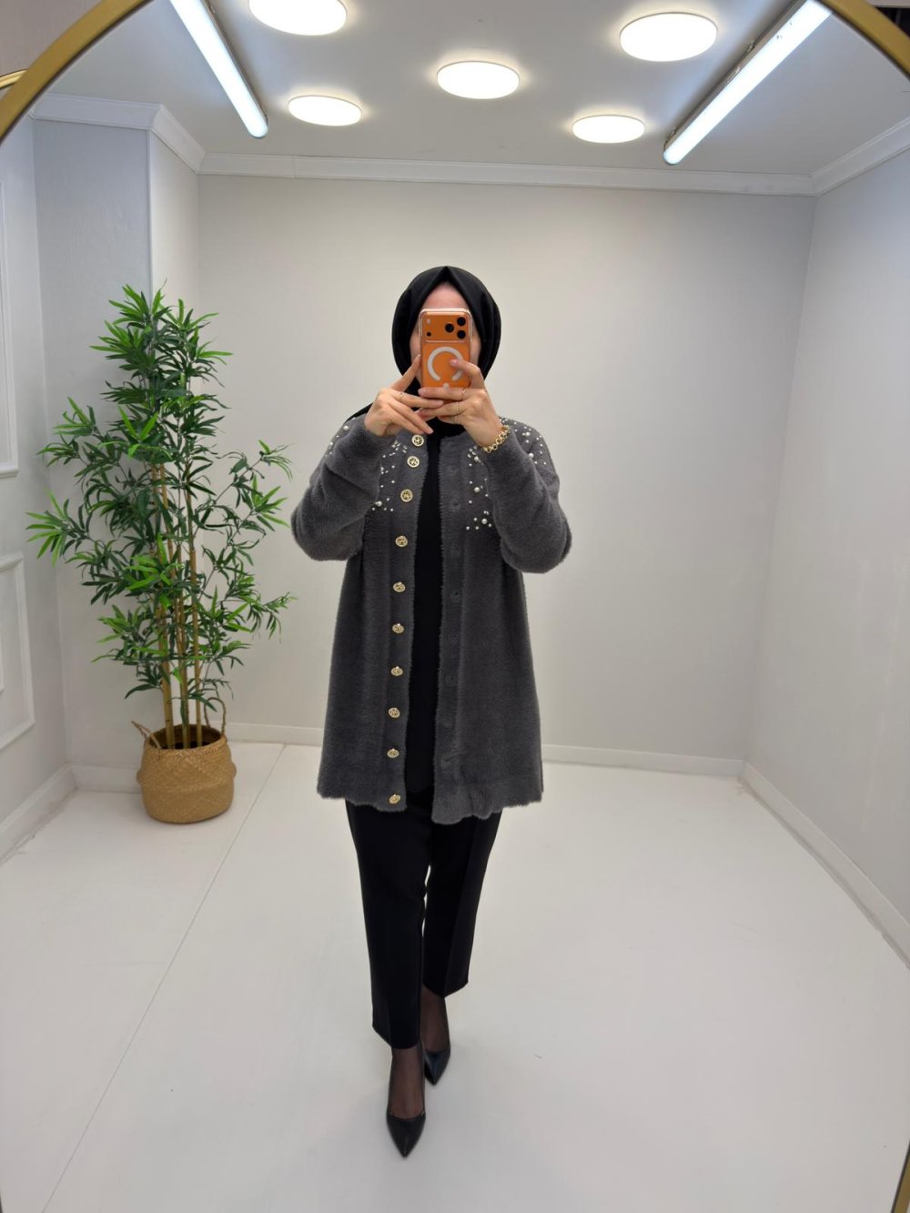 Nihle İncili Angora Hırka Antrasit
