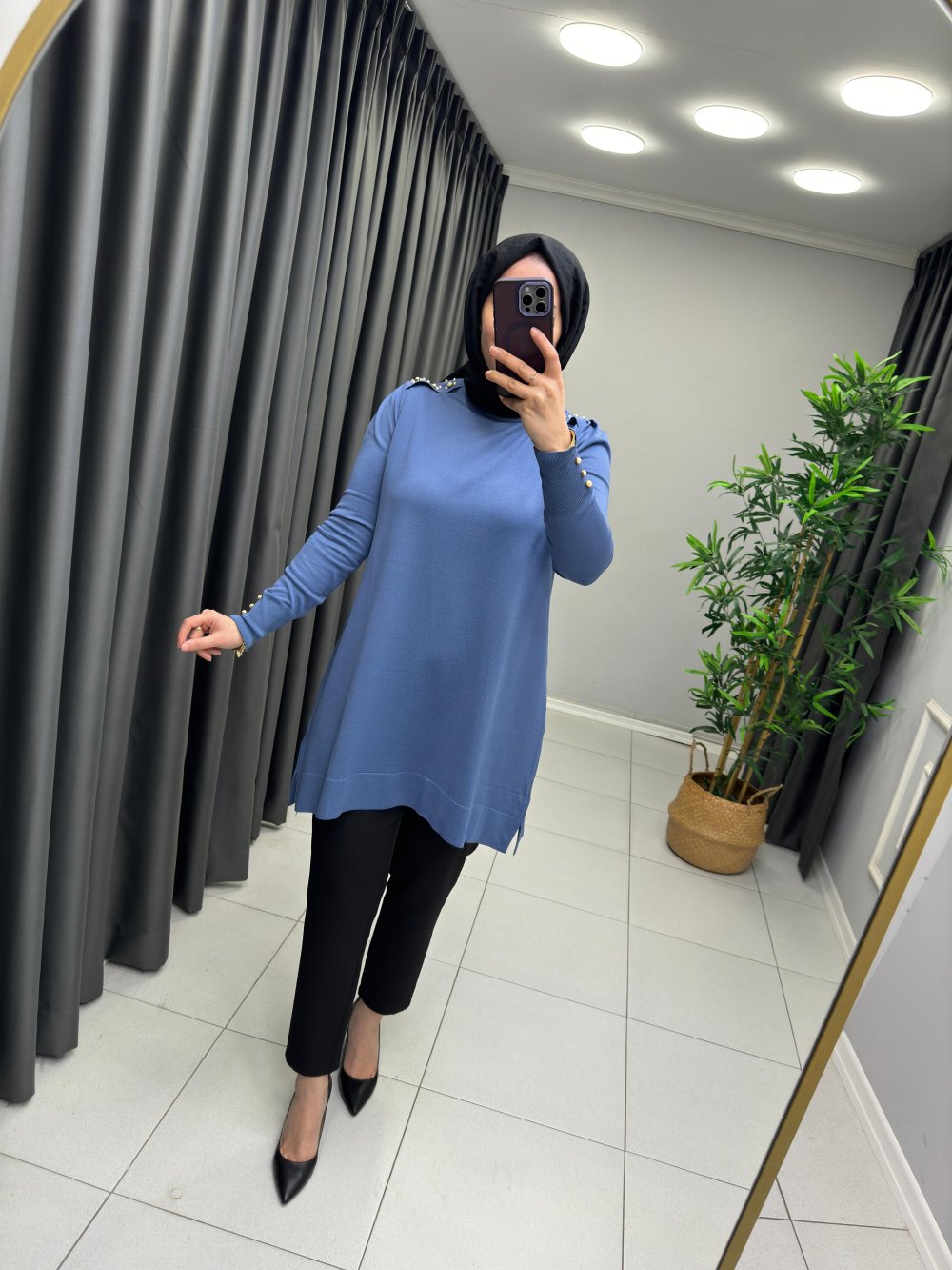 Omzu İnci Detaylı Merserize Mavi