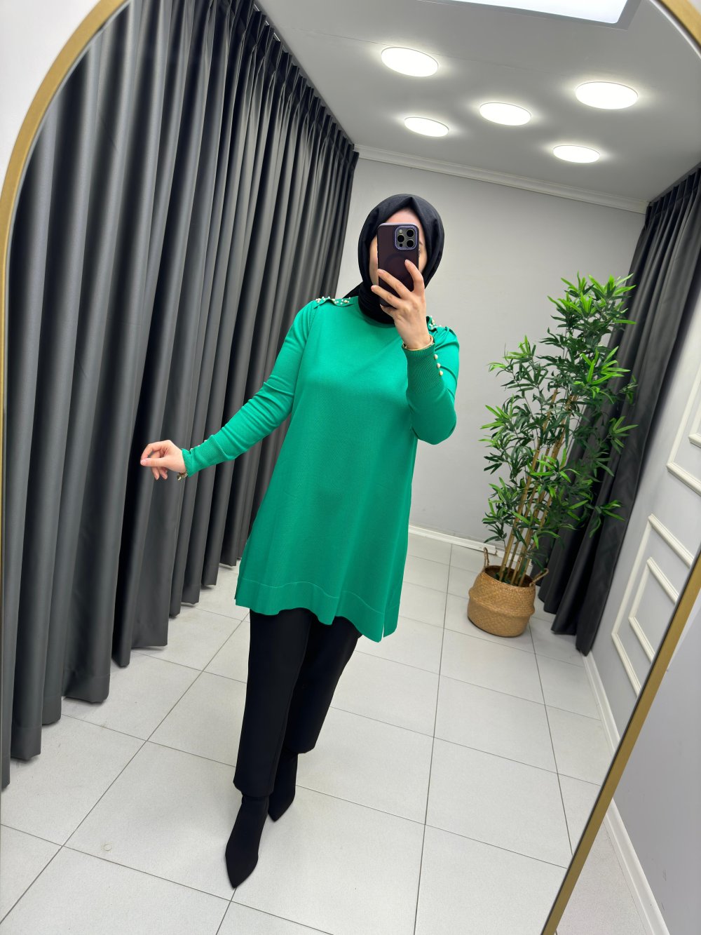Omzu İnci Detaylı Merserize Yeşil