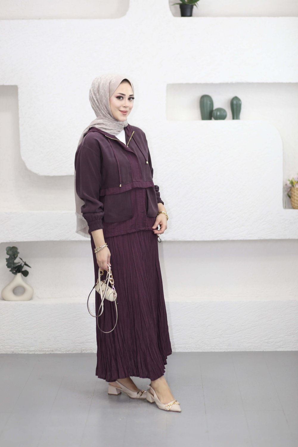 Palmiye Etekli Takım Mürdüm