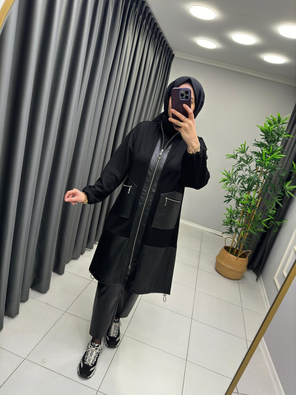 Stella Deri Detaylı Kap Siyah