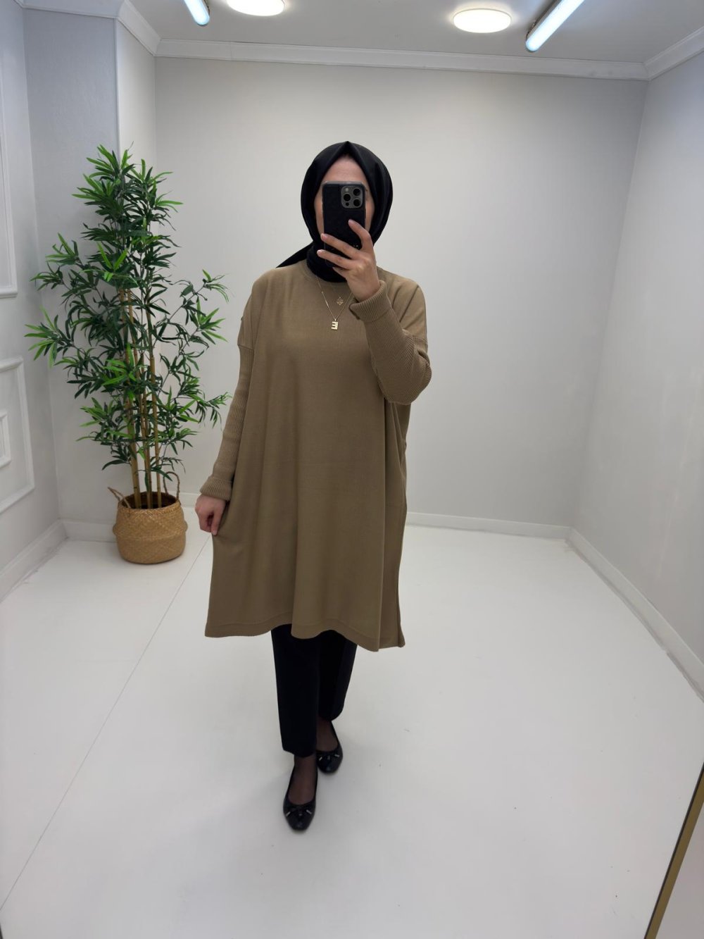 Uzun Triko Tunik Sütlü Kahve